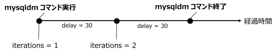 (コマンド例) [root@test]# mysqldm -u username -h hostname -p --iterations=10 --delay=30 --output-dir=dirname |