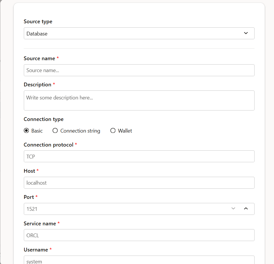 今回は、こちらの設定画面で Oracle AI Database 26ai のデータベース情報を設定しました。